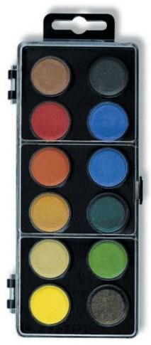 - Barvy vodové 12 odstínů - 22,5 mm, černý barevník, KIN