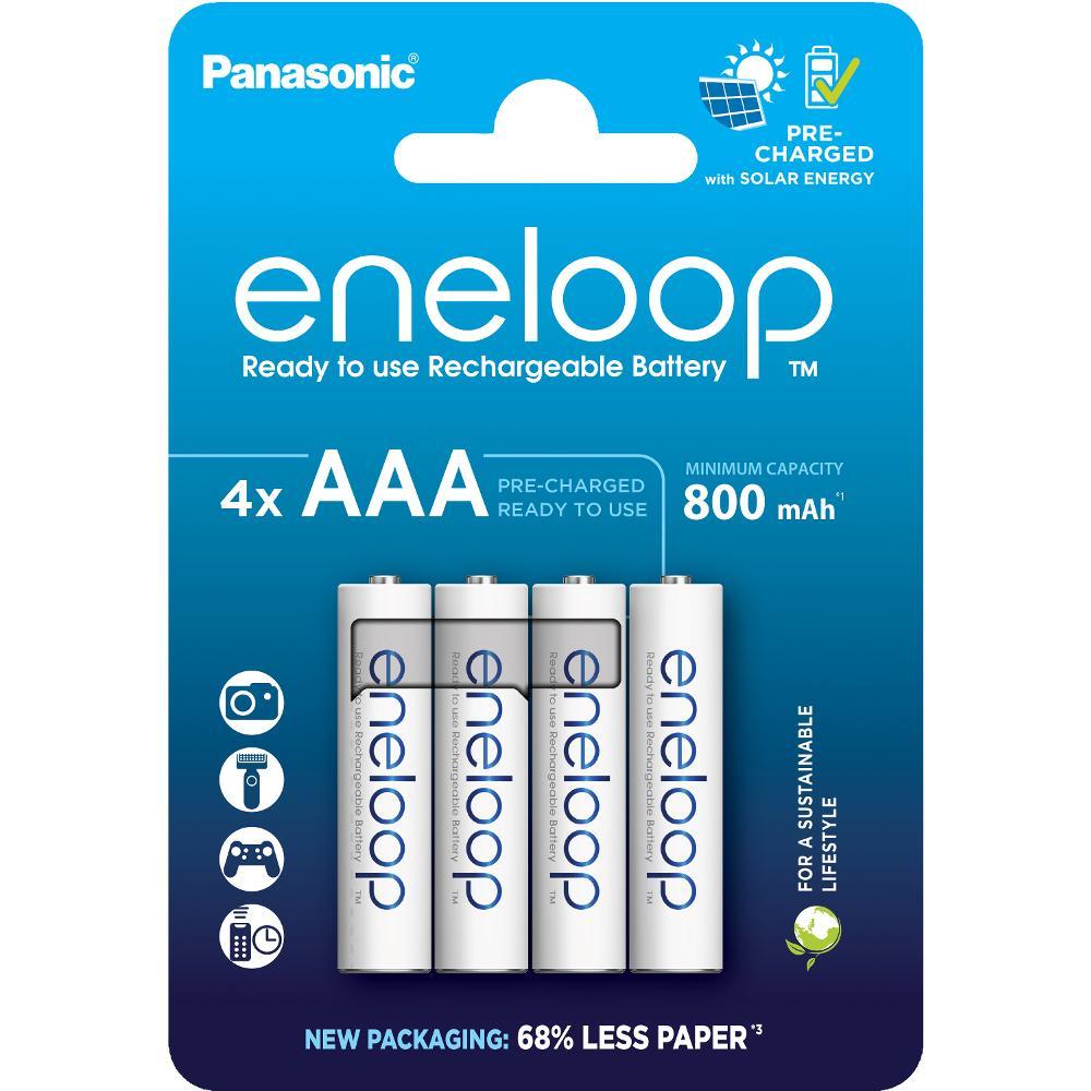 Unikátní mikrotužkové baterie AAA (R03) nově s 2100 dobíjecími cykly, které mají maximálně eliminovaný efekt samovybíjení Díky speciální technologie udrží tyto baterie po dobu pěti let 70% své kapacity Baterie Eneloop se dodávají v nabitém stavu a jsou připraveny k okamžitému použití Napětí 1,2 V Min. kapacita 750 mAh Balení: Blistr 4 ks