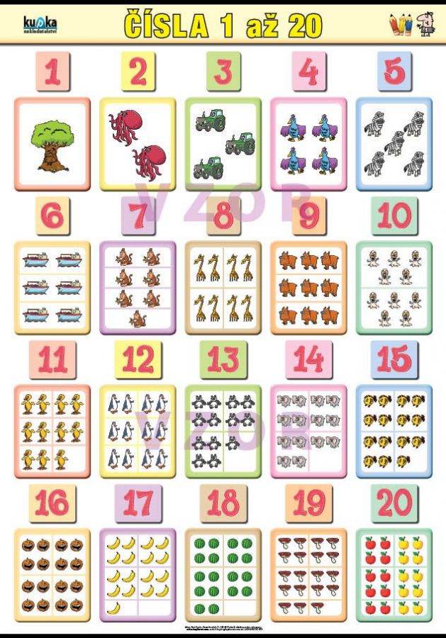 Nástěnný obraz pro výuku čísel 1 až 20.
