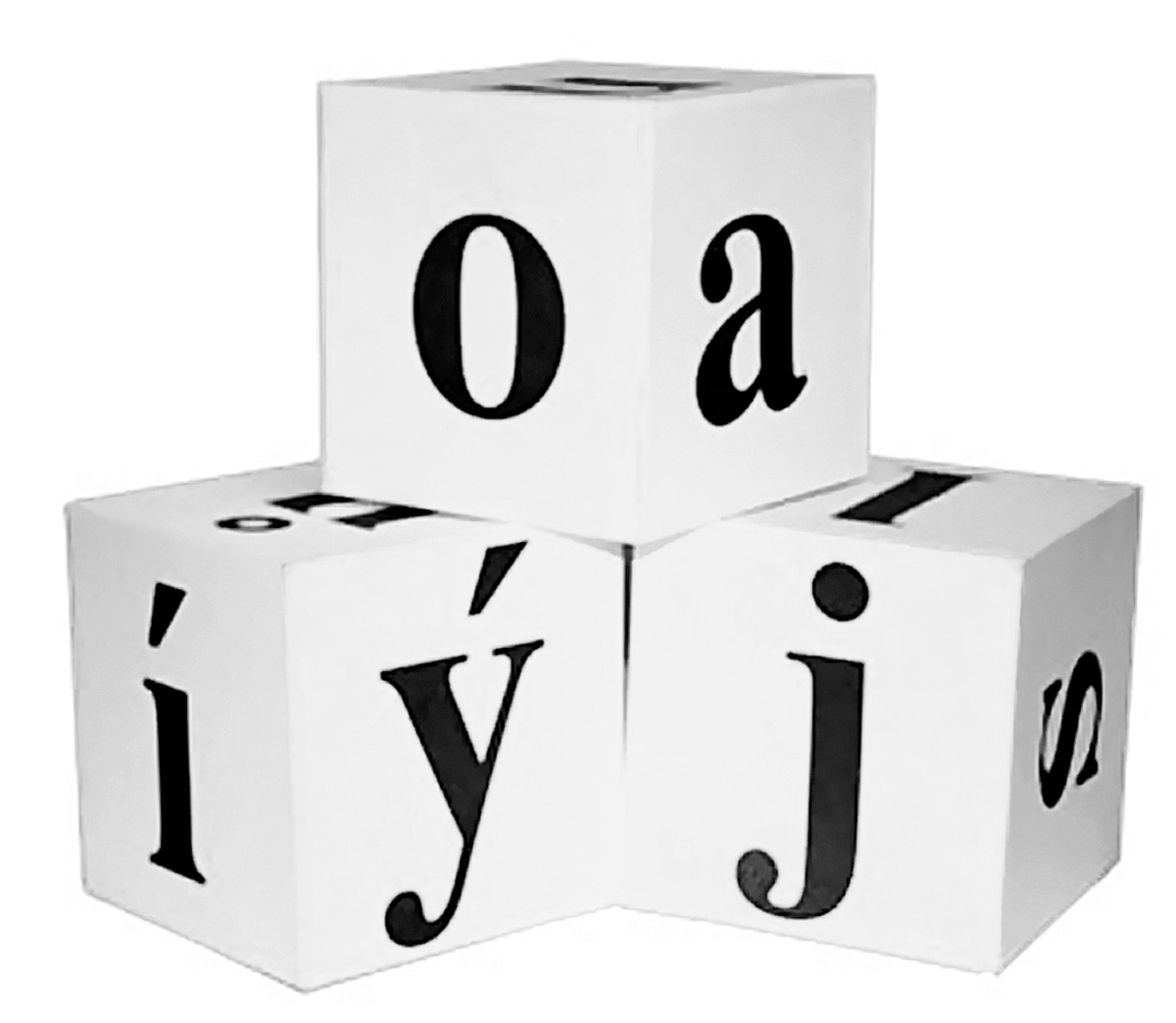 Soubor tří větších demonstračních kostek se základními písmeny probíranými v období práce s ŽA a začátku Slabikáře(m, l, s, p, t j + krátké a dlouhé samohlásky).(Předmět:Český jazyk)