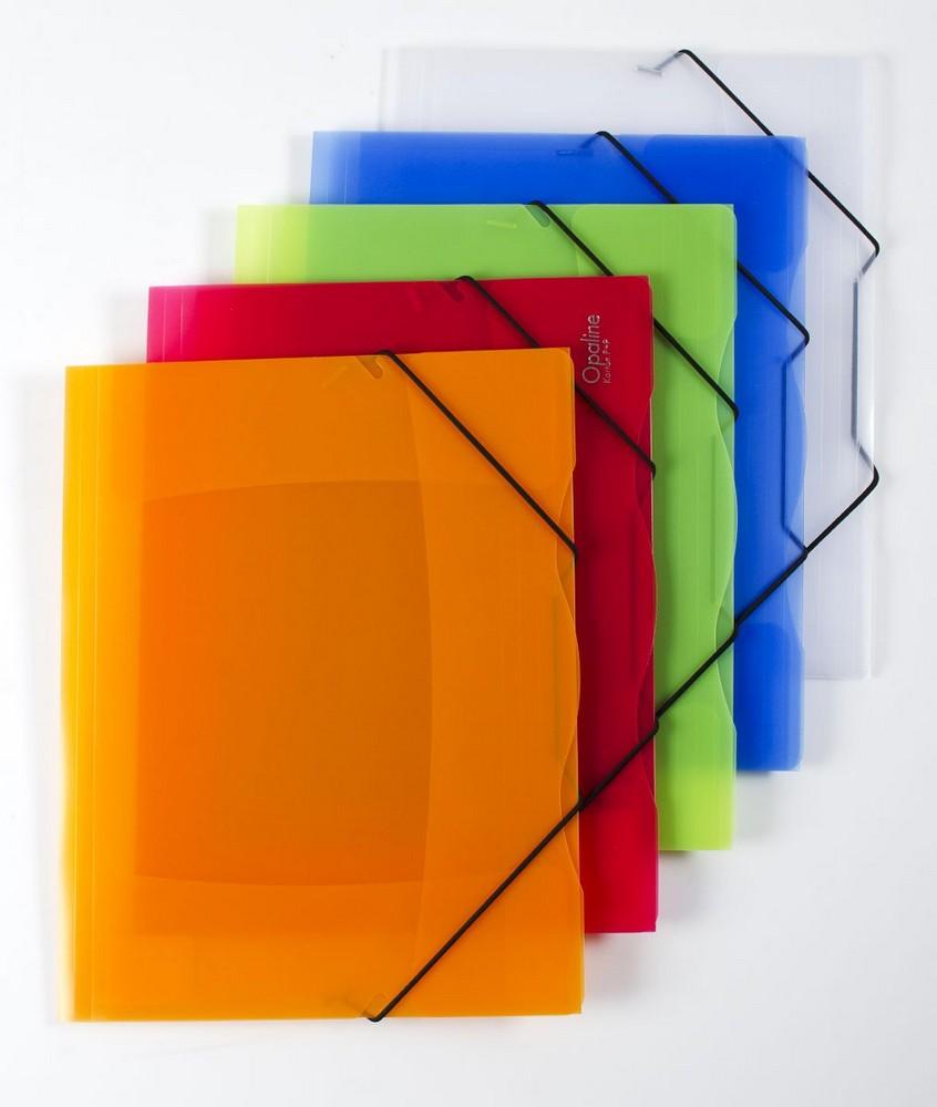 Desky vyrobené z průhledného pevného polypropylenu 400 mic se 3 klopami a se zavíráním na gumičku