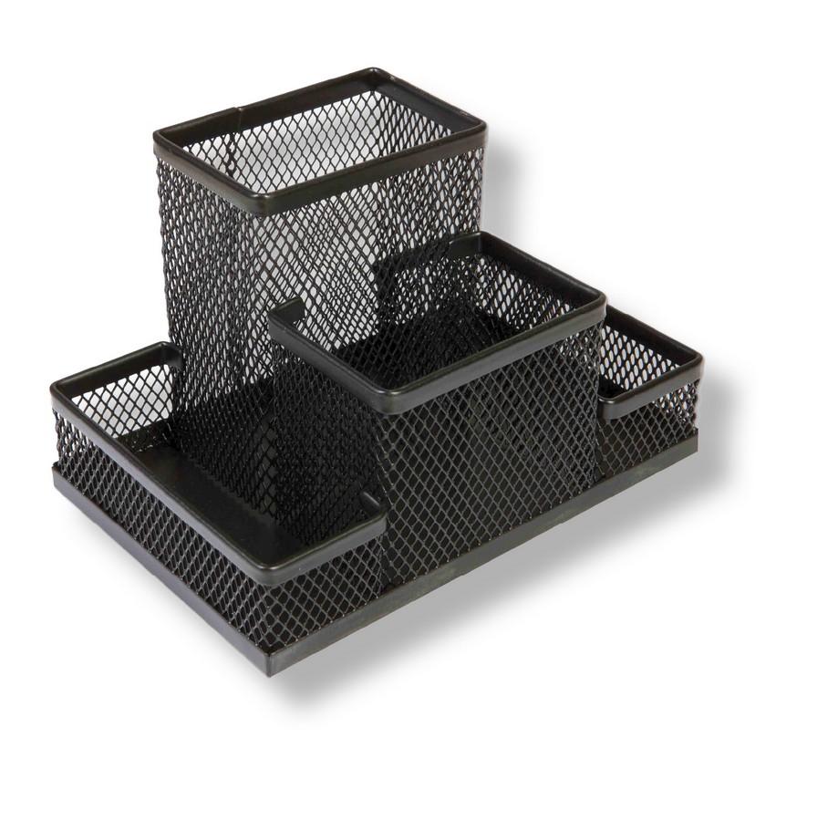 - Kovový stojánek se čtyřmi přihrádkami na tužky, kancelářské spony atd