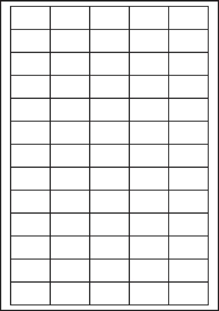 Samolepicí etikety na arších pro použití v laserových a inkoustových tiskárnách Rozměr: 38 x 21,2 mm Počet etiket na archu: 65 Obsah balení: 100 archů
