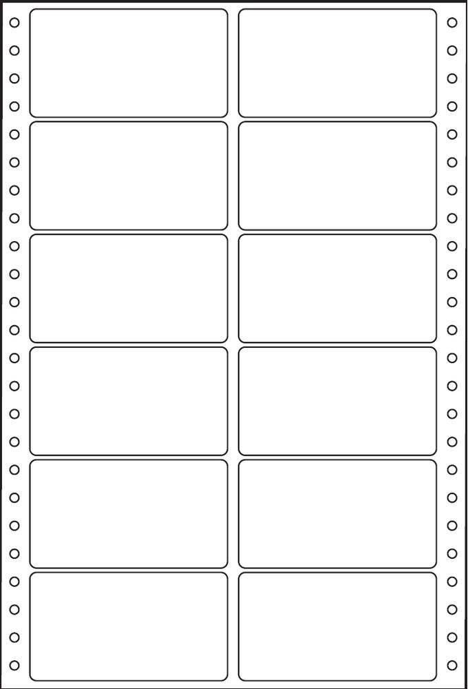 Počítačové samolepící etikety umístěné na "nekonečném" pásu skládaných listů (tzv. skladů) Jsou opatřeny postranní vodící perforací Určeny především pro potisk v mechanických počítačových tiskárnách Jsou dodávány standardně v bílé barvě Rozměr: 89 x 48,8 mm