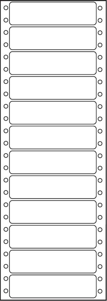 Počítačové samolepící etikety umístěné na "nekonečném" pásu skládaných listů (tzv. skladů) Jsou opatřeny postranní vodící perforací Určeny především pro potisk v mechanických počítačových tiskárnách Jsou dodávány standardně v bílé barvě Rozměr: 89 x 23,4 mm