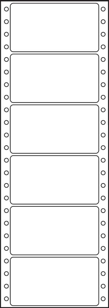 Počítačové samolepící etikety umístěné na "nekonečném" pásu skládaných listů (tzv. skladů) Jsou opatřeny postranní vodící perforací Určeny především pro potisk v mechanických počítačových tiskárnách Jsou dodávány standardně v bílé barvě Rozměr: 89 x 48,8 mm V balení 500 skladů