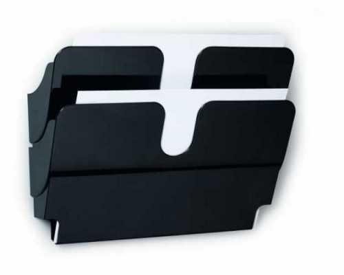 Držák na literaturu v moderním designu pro prezentaci informací o formátu A4 Obsahuje dvě A4 přihrádky na šířku Rozměry: 250 x 340 x 100 mm (V x Š x H) Barva: černá Prodejní jednotka 1 ks