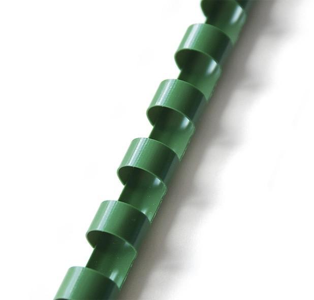 Plastový hřbet pro kroužkovou vazbu, průměr 22 mm Kapacita 151 - 180 listů A4/80 g Cena je uvedená za 50 hřbetů Barva: zelená Prodejní jednotka 1 balení