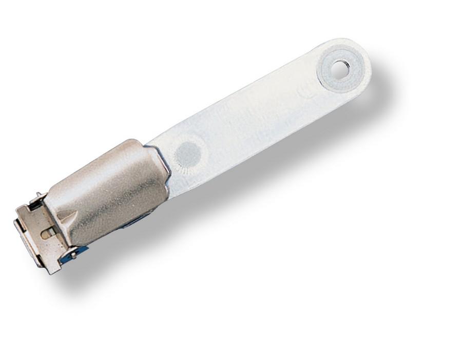 Klipsy USA-kovová spona s páskem ze silného PVC s kovovým patentem Po navléknutí přes otvor a sepnutí pásku je identifikátor hotový pro použití Klipsy EUR-kovová spona s páskem z umělé hmoty Klipsy USA i EUR jsou vhodné pro kombinaci s identifikátory PLM (pol. 328 901) a PLD (pol. 329 294) Klipsy samolepicí-kovový klip se zapínacím špendlíkem upevněný na plastové samolepicí podložce Barva: mléčná Prodejní jednotka 1 ks