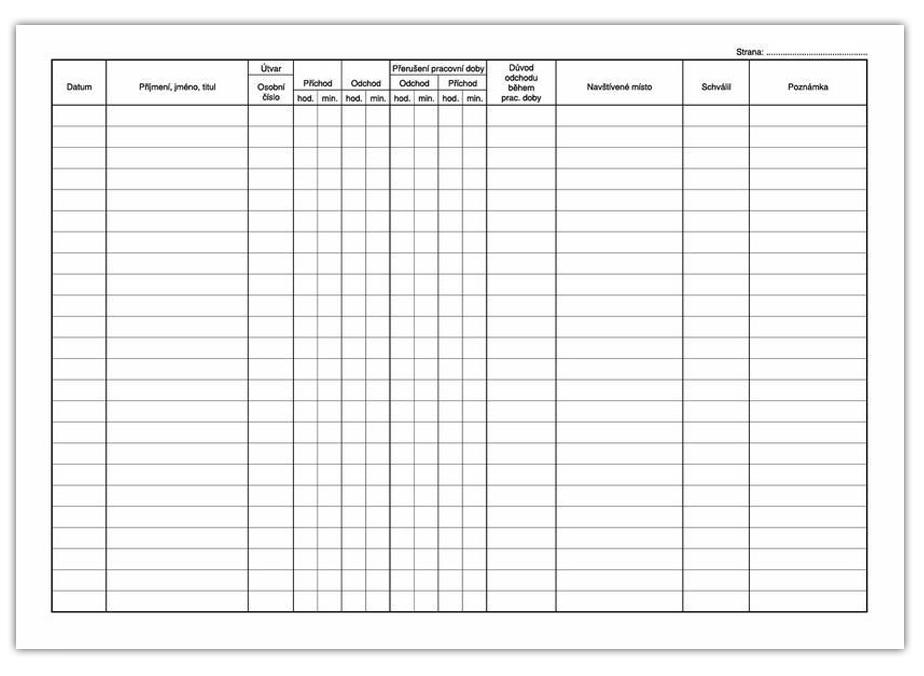 Kniha příchodů a odchodů Formát A4, 20 listů Cena je uvedená za 20 listů