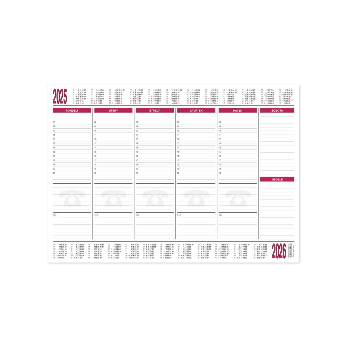 Týdenní plánovací podložka na stůl pro rok 2022 Formát: A2/ 594 x 420 mm, 30 listů Lepená vazba na spodní straně zabraňuje poškození při práci