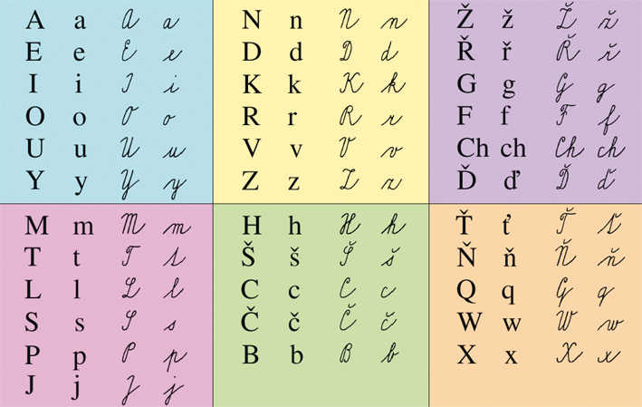 Tabule psacího i tiskacího písma přináší písmena v pořadí, v jakém jsou uvedena v učebnicích počátečního čtení a psaní z nakladatelství ALTER. Odpadá tak pracné hledání v tradičně řazené abecedě, které je pro žáky v prvním ročníku dosud obtížné.