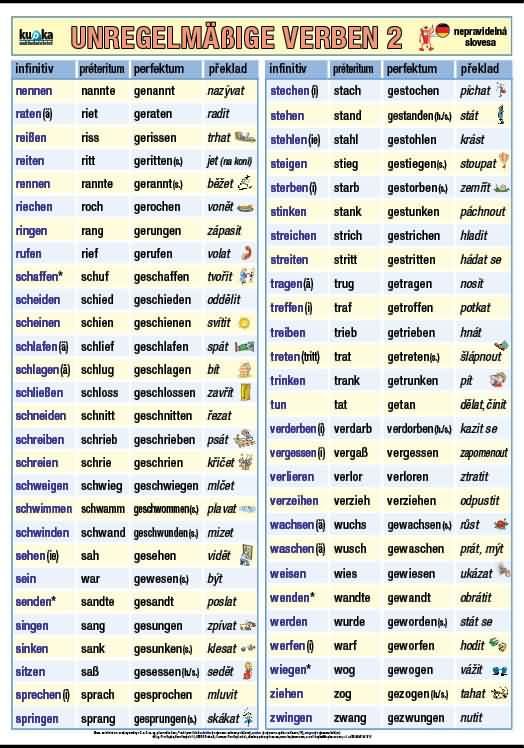 - řazeno dle abecedy (2. část obsahuje celkem 55 sloves: nennen – zwingen)