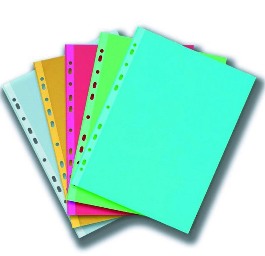 Zelený průhledný lesklý obal, horní strana otevřená, materiál polypropylen, euroděrování. Cena je uvedená za 25 ks.