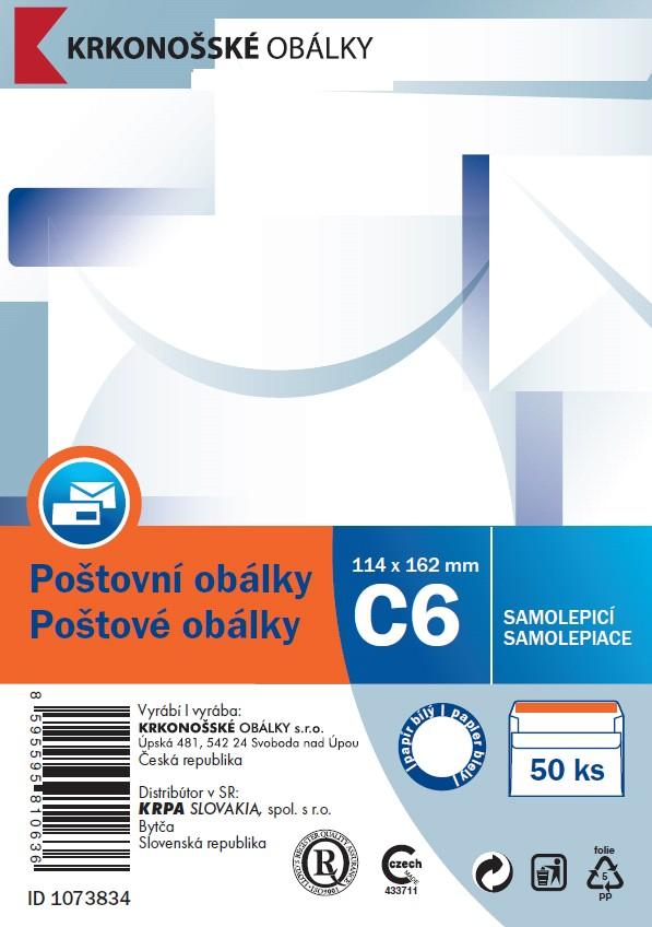 Obálka C6 samolepicí, 50 ks, 114 x 162