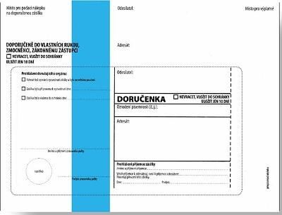 - Obálka s doručenkou a odtrhovacím poučením (správní řád) 162 x 217, modrý pruh, text, 100 ks577 Kč/ bal.477 Kč bez DPH