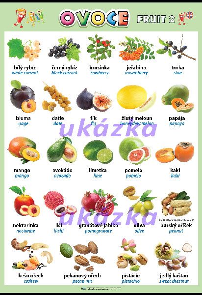 Názorné fotografie určené pro seznamování se s dalšími druhy ovoce.