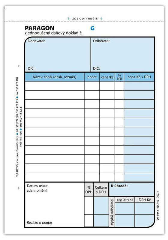 - Paragon A6,číslovaný, nepropisující, 2x 50 listů65 Kč/ ks54 Kč bez DPH