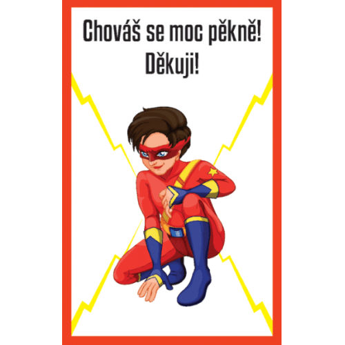 Originální sada pochvalných karet s obrázky superhrdinů, které přivedou děti do vytržení a zvýší jejich motivaci nejen při hodinách ve škole. Pokud se dítě zachová správně, získá kartu s pochvalou. Karta je odměnou a zároveň připomínkou, která ho dlouhodobě motivuje.