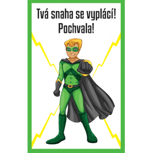 Originální sada pochvalných karet s obrázky superhrdinů, které přivedou děti do vytržení a zvýší jejich motivaci nejen při hodinách ve škole. Pokud se dítě zachová správně, získá kartu s pochvalou. Karta je odměnou a zároveň připomínkou, která ho dlouhodobě motivuje.
