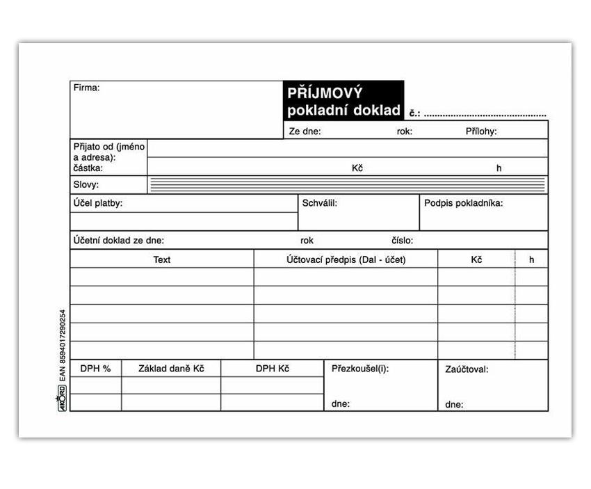- Příjmový pokladní doklad nečíslovaný, A6, blok 100 L27 Kč/ ks22 Kč bez DPH