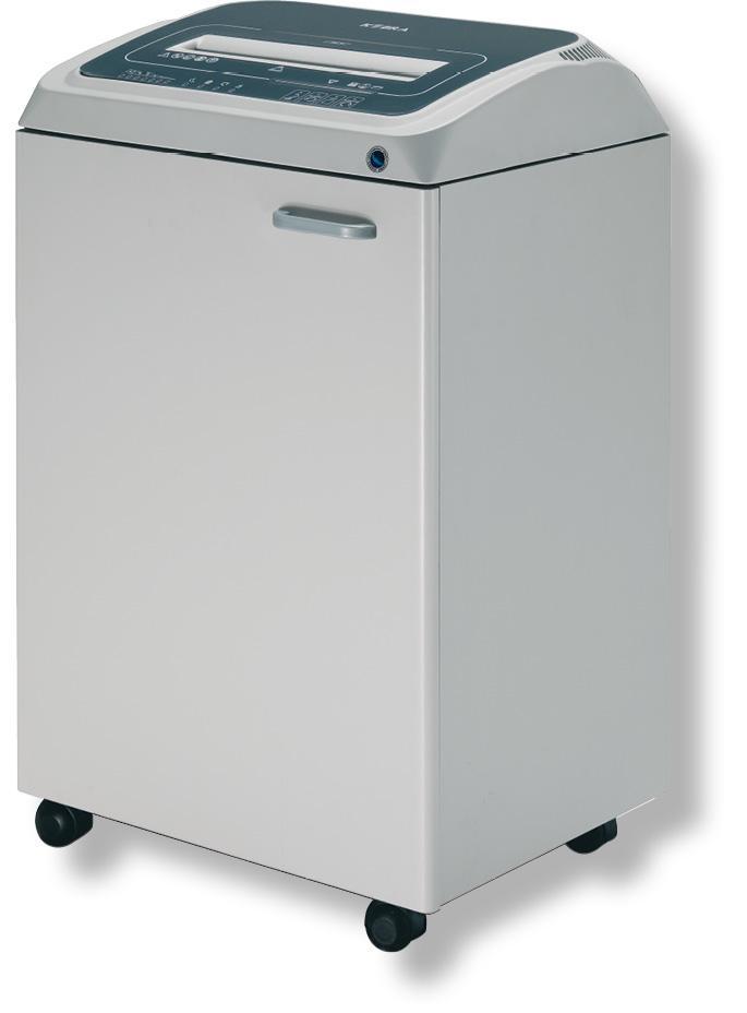 Týmová skartovačka s kapacitou skartace 27/29 listů 70g a podélným řezem 3,8 mm.
