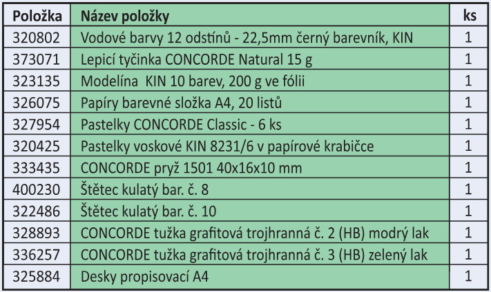 Cenově zvýhodněný balíček školních potřeb pro 1.třídu.