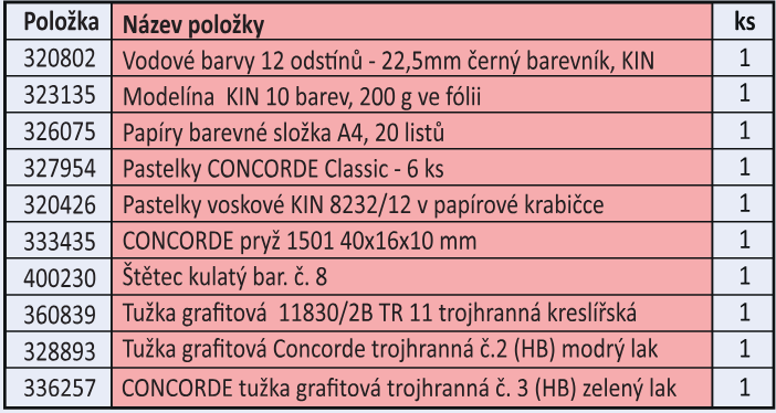 Cenově zvýhodněný balíček školních potřeb pro 1.třídu.
