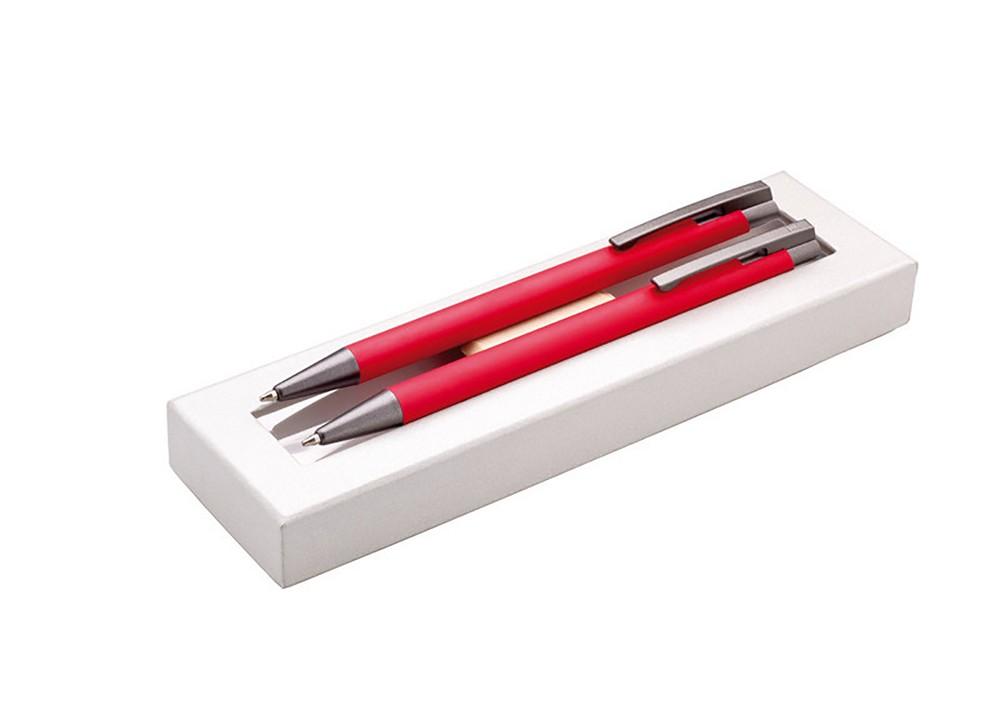 Dárková sada propisky a mikrotužky Pogumovaný povrch s šedými doplňky Luxusní dárkové pouzdro s průhledným okénkem