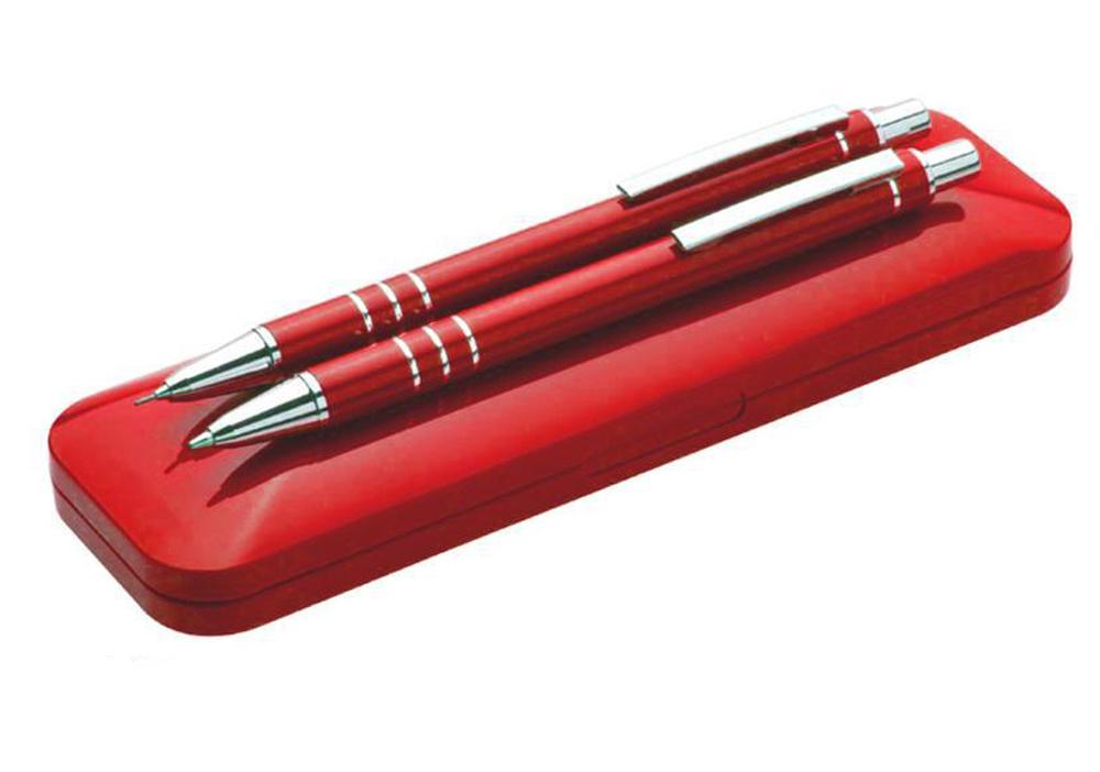 Sada kuličková a mechanická tužka 0,5 mm v dárkovém balení Hliníkové tělo v kombinaci se stříbrnými doplňky Dodáváno v plastovém boxu v barvě tužky Stiskací mechanismus Velkoobsahová modrá náplň