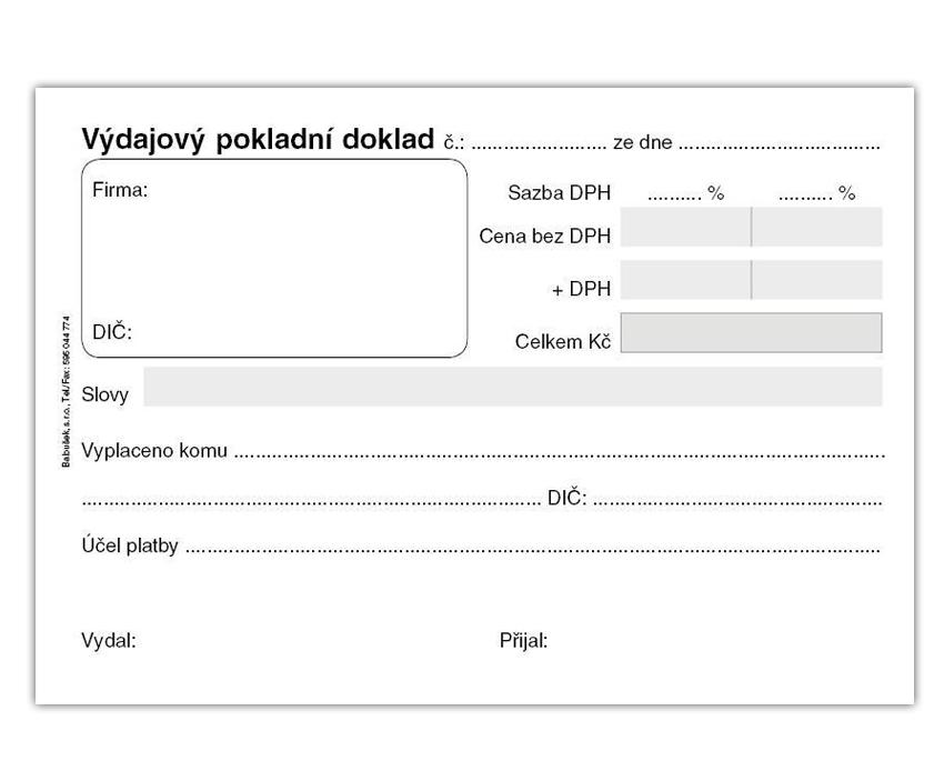 Výdajový pokladní doklad i pro podvojné účetnictví A6 přímopropis.