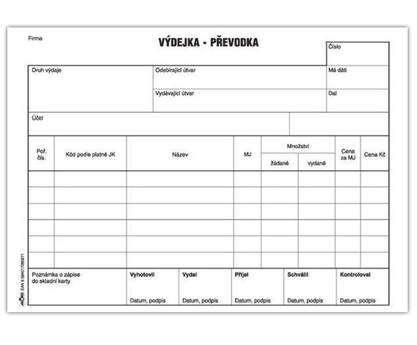 - Výdejka - převodka A5, blok 100 L, samopropisovací80 Kč/ ks66 Kč bez DPH
