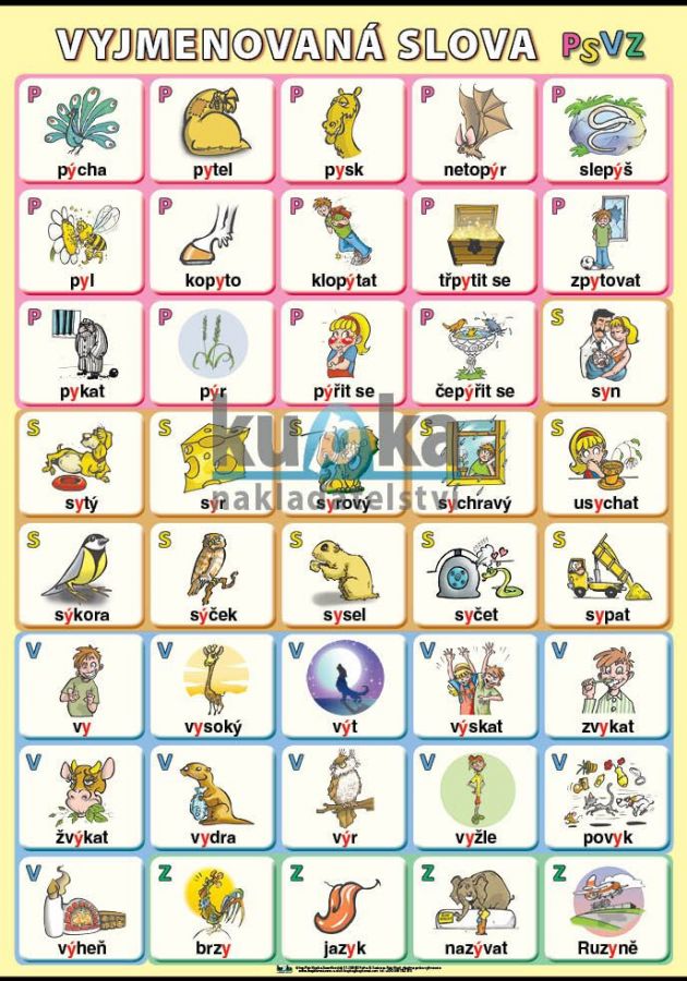 • 40 názorných ilustrací vyjmenovaných slov po P, S, V, Z od Petra Kopla