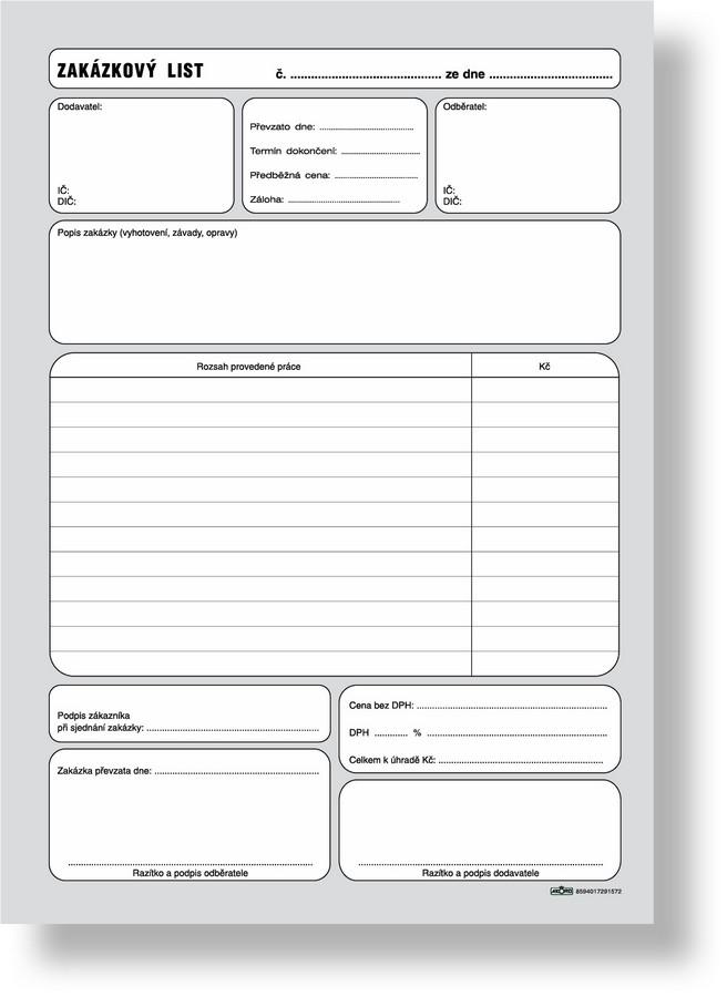 - Zakázkový list A4, blok 100 L, samopropisovací151 Kč/ ks125 Kč bez DPH