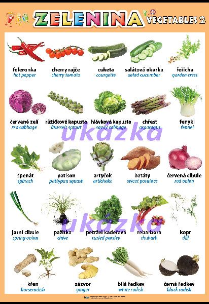 Názorné fotografie určené pro seznamování se s dalšími druhy zeleniny.