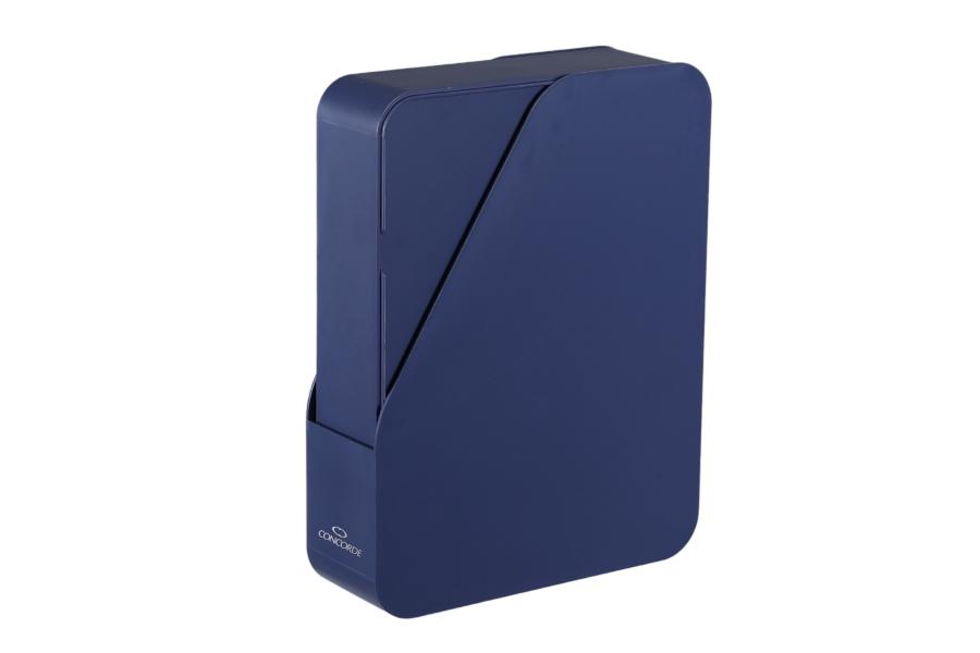 - Kompaktní stolní kancelářská sada vyrobená z recyklovaných materiálů zahrnuje 7 ks vybavení v modré barvě: stojan na katalogy (32,5 x 25 x 8 cm), zásobník na bločky (11,8 x 10,5 x 6,5 cm), stojánek na psací potřeby (12,5 x 6,5 x 11,2 cm), zásobník na dokumenty (31,5 x 24 x 7 cm), dva organizéry na kancelářské potřeby (12,5 x 10,5 x 6,5 cm), a organizér na psací potřeby (23 x 6,4 x 10,6 cm) s vyjímatelnou mřížkou, po vyndání lze použít jako samostatný organizér