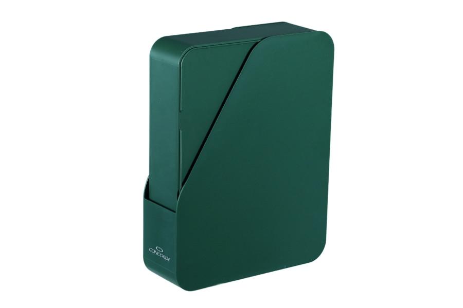 - Kompaktní stolní kancelářská sada vyrobená z recyklovaných materiálů zahrnuje 7 ks vybavení v zelené barvě: stojan na katalogy (32,5 x 25 x 8 cm), zásobník na bločky (11,8 x 10,5 x 6,5 cm), stojánek na psací potřeby (12,5 x 6,5 x 11,2 cm), zásobník na dokumenty (31,5 x 24 x 7 cm), dva organizéry na kancelářské potřeby (12,5 x 10,5 x 6,5 cm), a organizér na psací potřeby (23 x 6,4 x 10,6 cm) s vyjímatelnou mřížkou, po vyndání lze použít jako samostatný organizér