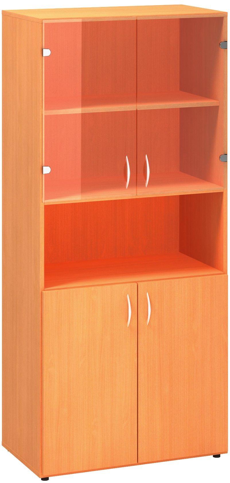 Policová skříň ALFA 500 5M (2M dveře / 1M nika / 2M dveře sklo), buk bavaria