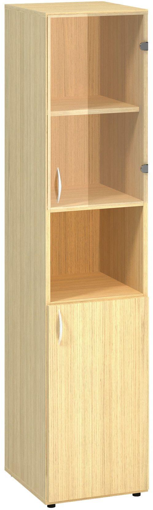 Policová skříň ALFA 500 úzká, 5M (2M pravé dveře / 1M nika / 2M pravé dveře sklo), dub vicenza