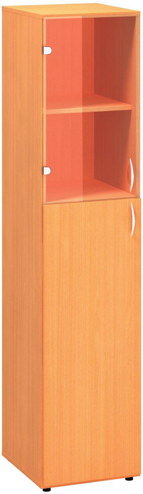 Policová skříň ALFA 500 úzká, 5M (3M levé dveře / 2M levé dveře sklo), buk bavaria