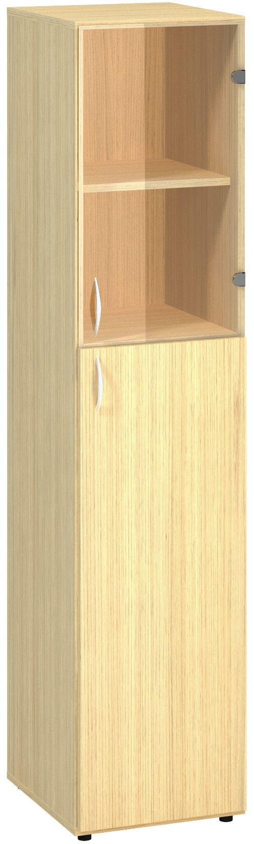 Policová skříň ALFA 500 úzká, 5M (3M pravé dveře / 2M pravé dveře sklo), dub vicenza