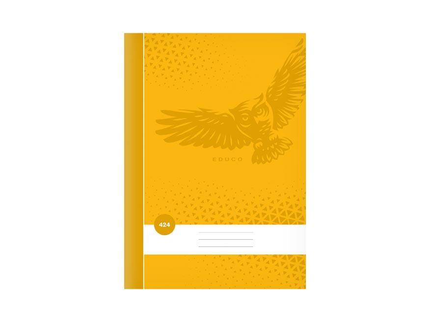 - Školní linkovaný sešit ve formátu A4, ve žluté barvě, s motivem sovy, v deskách z křídového papíru