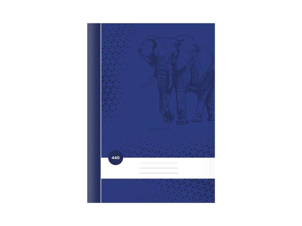 - Školní sešit čistý, bez linek ve formátu A4, v tmavě modré barvě, s motivem slona, v deskách z křídového papíru