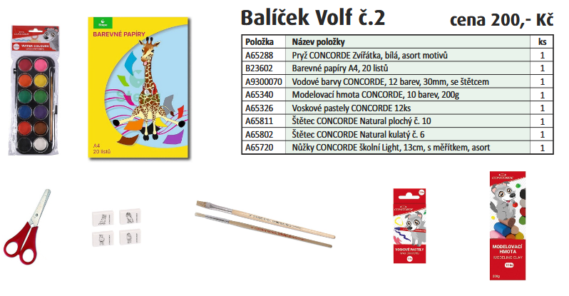 Školní balíček CONCORDE - Balíček Volf č. 2200 Kč/ ks165 Kč bez DPH