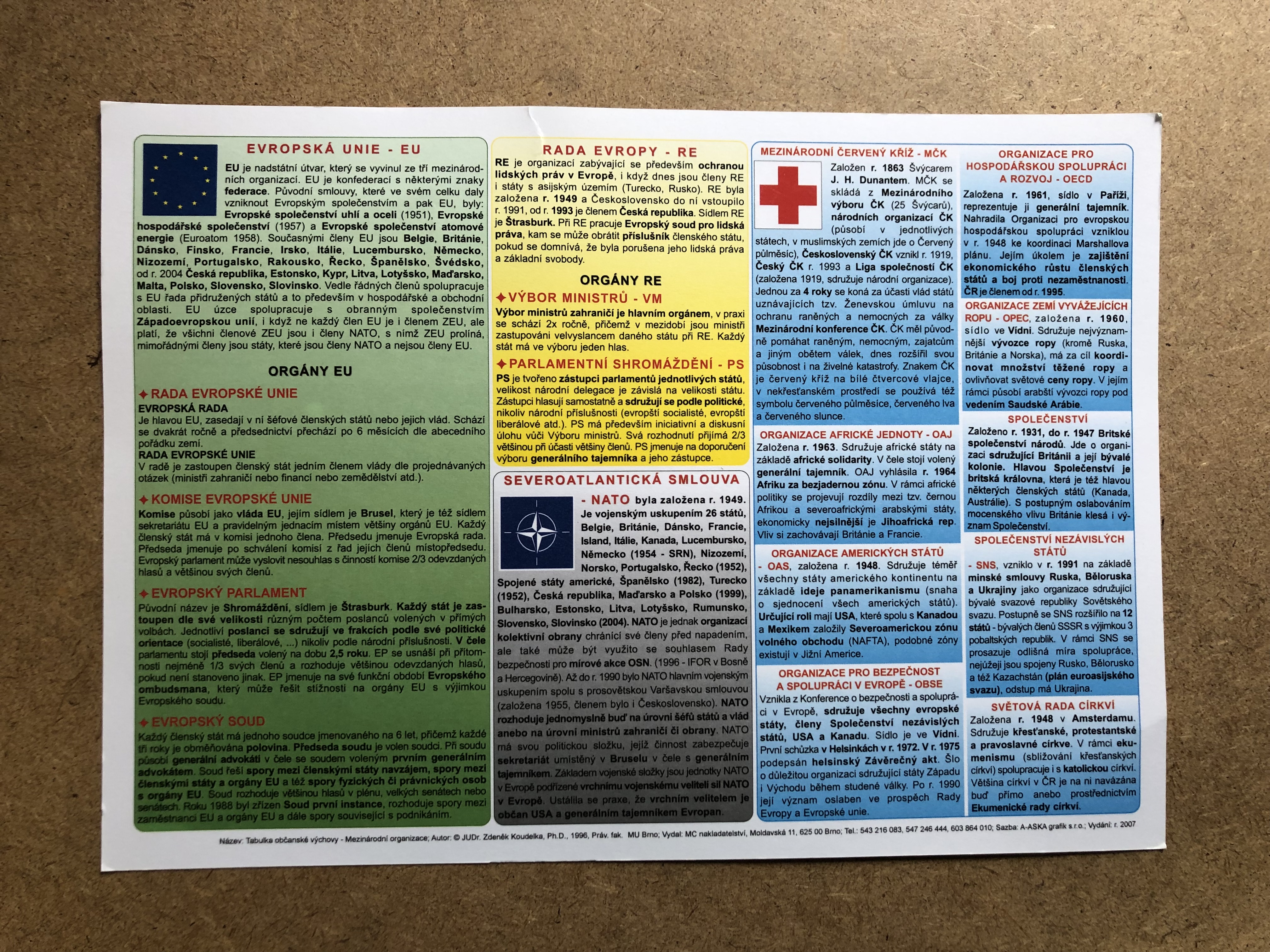 - Tabulka občanské výchovy - mezinárodní organizace